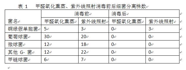 4.3紫外線照射消毒法 在各醫(yī)院較廣泛地應(yīng)用其殺菌原理是紫外線光使微生物的 DNA 產(chǎn)生誘變和致死。但紫外線照射強(qiáng)度及消毒效果受多種因素影響 ,從表 1 兩種消毒效果比較可知甲醛氧化熏蒸消毒優(yōu)于紫外線照射消毒法。甲醛氧化熏蒸消毒效果顯著 ,取材方便、制作簡單 ,置入箱內(nèi)消毒不受其他條件影響。此方法在基層醫(yī)院更具有實用性。